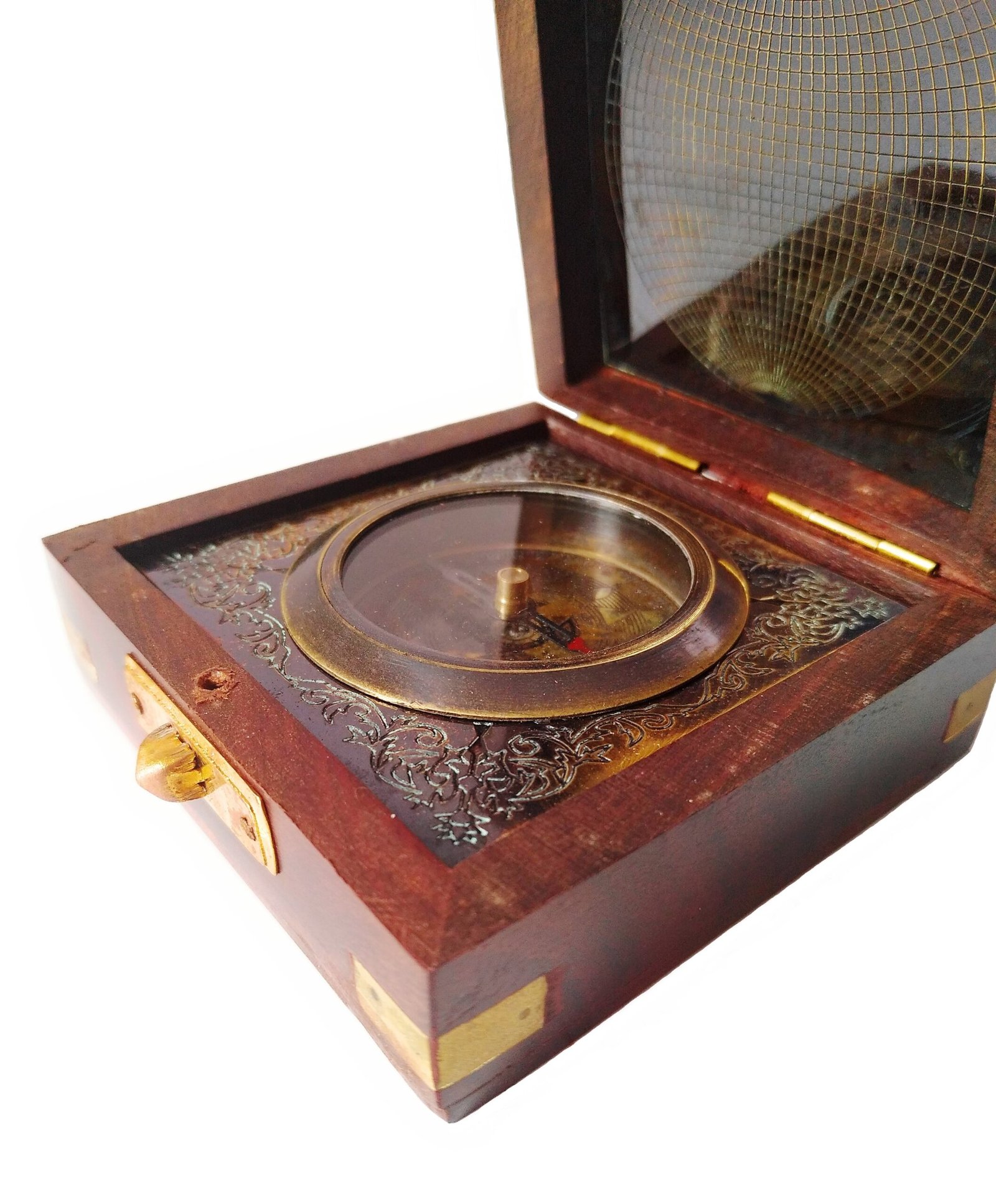 Compass in Wooden Box. Made up of Solid Brass.